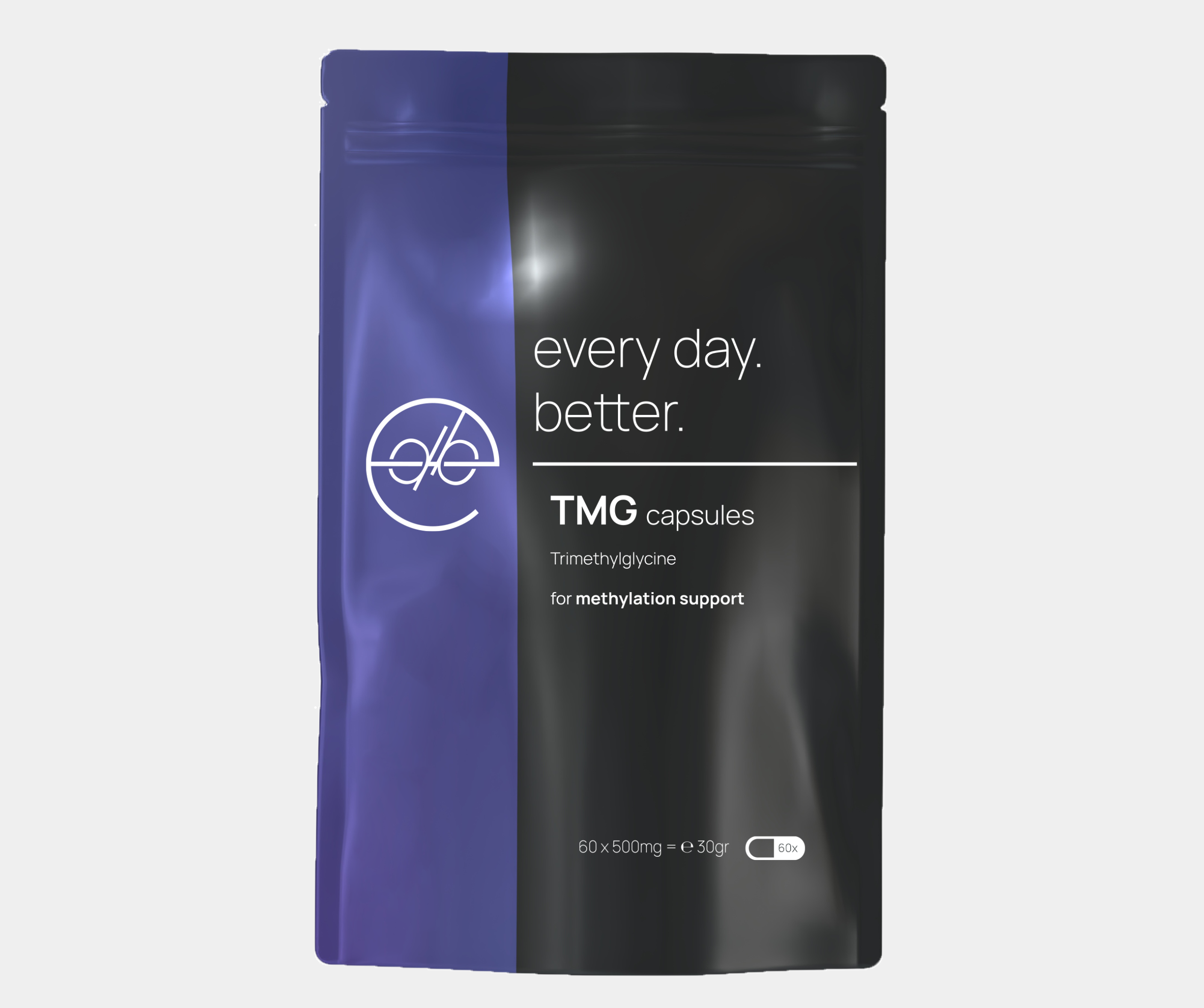 TMG Capsules from Every Day Better contain 500 mg of trimethylglycine per capsule and support the methylation process, homocysteine balance, and cellular energy. Ideal as a supplement to NMN and NAD⁺ boosters.