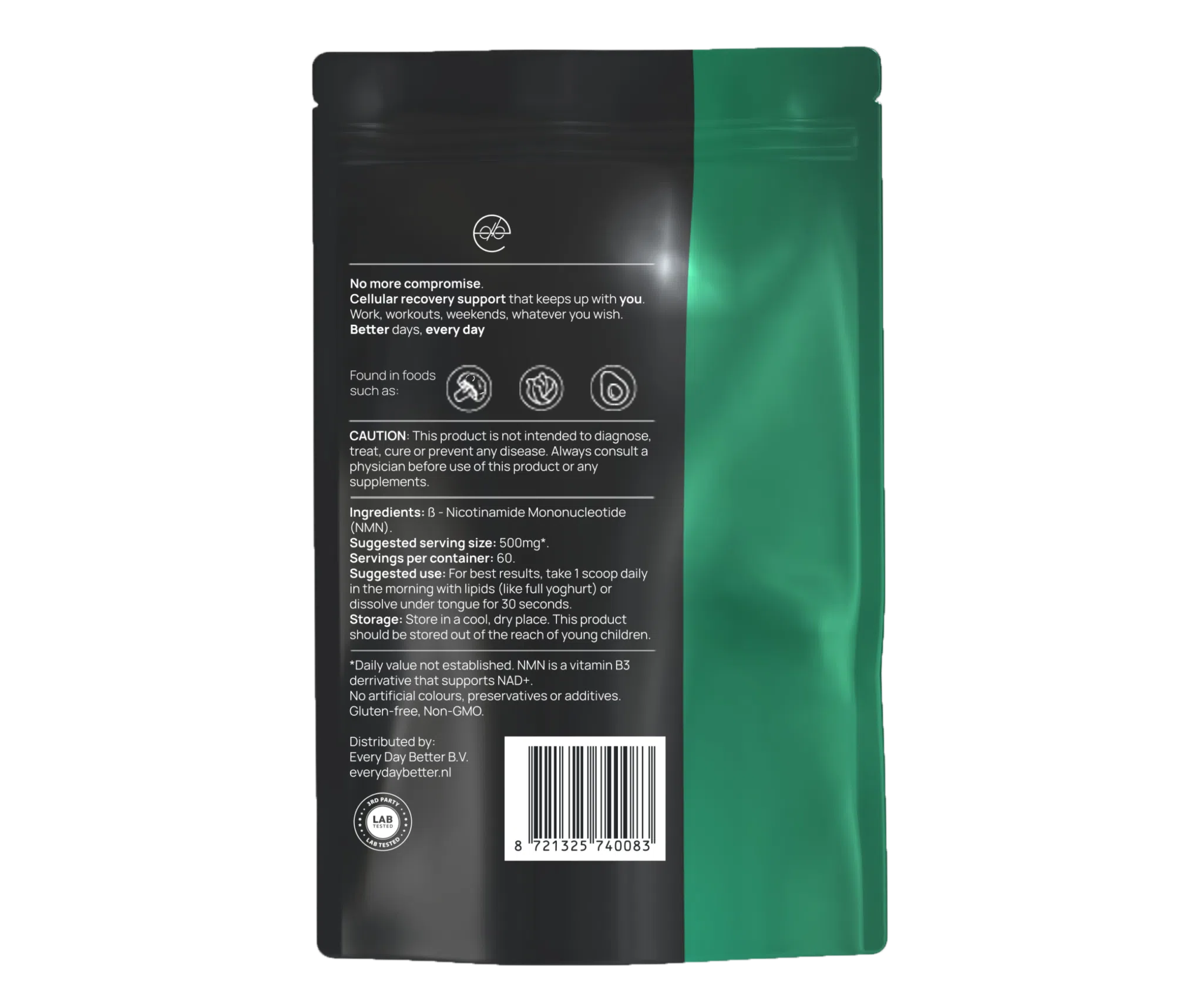 Kies voor puurheid, veiligheid en bewezen werking. Bestel jouw Every Day Better NMN poeder vandaag nog en ervaar het verschil.